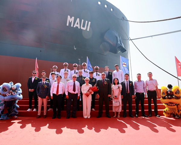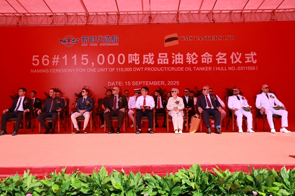 On 15 September, 2025, we held naming ceremony for 56# 115,000 DWT Crude/Product Oil Tanker bearing builder's hull no.0311556. The company's Executive Deputy General Manager Mr. Zhang Yuyong, the representative from TMS Tankers Ltd Mrs. Eugenia Papapontikou, LR Service Delivery Manager of Central China Mr. Li Yi and other VIP guests attended this ceremony.