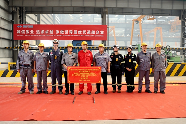 On October 9, 2025, the steel cutting of two units of 8400 TEU Container Vessels bearing builder's hull nos.0208121 and 0208122 was carried out successfully by New Times Shipbuilding Co., Ltd.. The company's Executive Deputy General Manager Mr. Zhang Yuyong, Deputy General Manager & Executive Director Mr. Yuan Heng, General Manager Assistant Mr. Liu Feng, the owner's representative Mr. Ni Jie and the representatives from ABS classification society attended and witnessed this event.