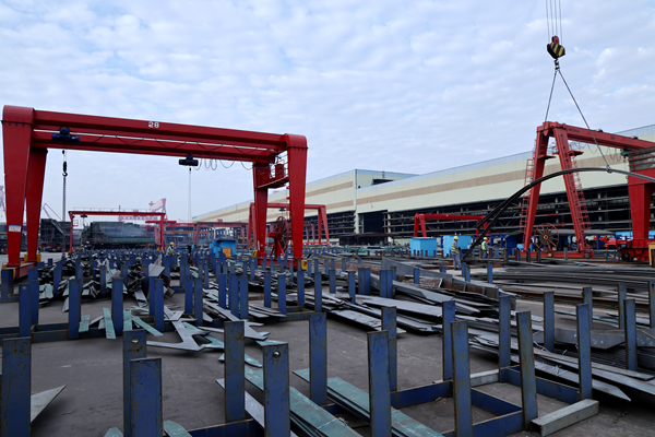 精准服务,提升效率,钢加车间作为分段制作的服务和支撑保障,作用可想而知,为了进一步提升服务能力和水平,钢加车间管理团队集思广益:努力优化各阶段流程,从分段套料图拆分工艺全新升级开始,优化套料图拆分规则与分类标准,减少单分段材料分类种类及堆位数量,降低二次翻堆频率,实现原材料与成品料集配的高效化、标准化,为分段的建造降本增效奠定基础。