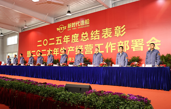 大会在嘹亮的厂歌、口号声中拉开帷幕,常务副总经理张玉永主持,他指出,今天隆重举行“二〇二五年度总结表彰暨二〇二六年生产经营工作部署会”,目的是回首奋进的2025年,致敬锐意进取的先锋楷模;展望激昂的2026年,吹响奋勇前行的战斗号角,凝心聚力、攻坚克难,全面贯彻落实董事会、党委、经营层的各项指示,促进公司各项管理全面提升,奋力谱写公司高质量发展新篇章,把新时代造船打造成世界一流的百年企业。
