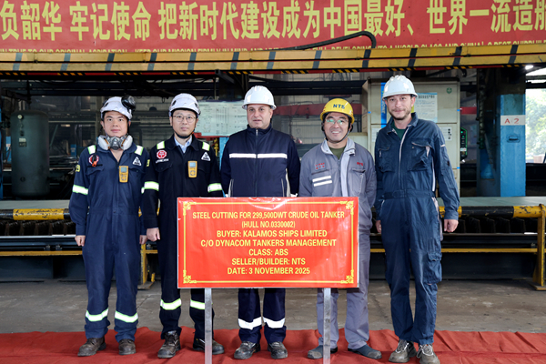 11月3日上午,公司在钢加车间东区举行船舶点火开工仪式,2#299500吨油船结构件开始预制。