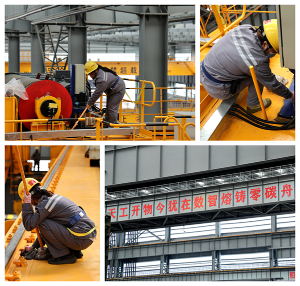 行车作为分段制造部生产的“空中动脉”,其运行状态直接关系到生产效率与人员安全,分段制造部“冷新红班组”,通过班前会进行广泛动员和宣贯,明确了活动的意义、目标和要求,激发了全体员工“爱护设备如爱护眼睛”的责任感和主人翁意识,他们提前制定清洁方案,备齐清洁工具,分工明确、协同作战。无论是驾驶室的内外擦拭,还是轨道周边的杂物清理,亦或是高空大梁的积尘清扫,都认真负责、毫无怨言。面对高空作业的不便及油污清理的难题,他们齐心协力,不断创新工作方法,决不放过任何卫生死角。在他们的努力下,1#~4#200吨桥式起重机表面锃亮如新,“效率高、成效好”,作业区域整洁有序,为新车间、新设备后续的保养维护工作起了标杆式的榜样作用。组长冷新红在总结时感慨道:“设备擦亮了,自己看着都舒心,操作起来更顺手,也更愿意去精心维护它。”这种“光鲜度”的提升,不仅美化了工作环境,更潜移默化地强化了员工的规范操作意识和设备维护习惯,有效降低了因清洁不到位、保养不及时可能引发的设备故障风险,提升了设备运行效率和可靠性。